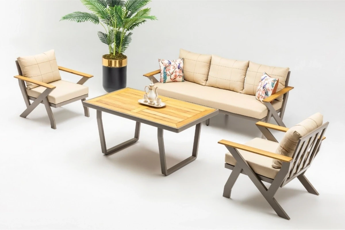 The Norma Seating Group, which has a different design, continues to appeal to the eye with the combination of aluminum and wood. The Norma Seating Group, which will add to your comfort with its comfortable seating, stainless structure and water-repellent feature of the cushion fabrics, is offered to you.