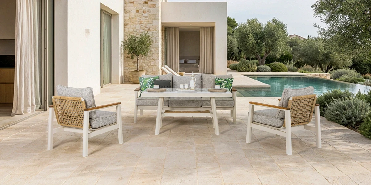 Terazzi koleksiyonlarındaki dış mekan mobilyaları, doğru aydınlatma ile birlikte kullanıldığında alanın daha güzel görünmesini sağlar. Yüzey dokuları daha net okunur, renk geçişleri daha doğru algılanır ve kullanım alanları daha belirgin hale gelir.
