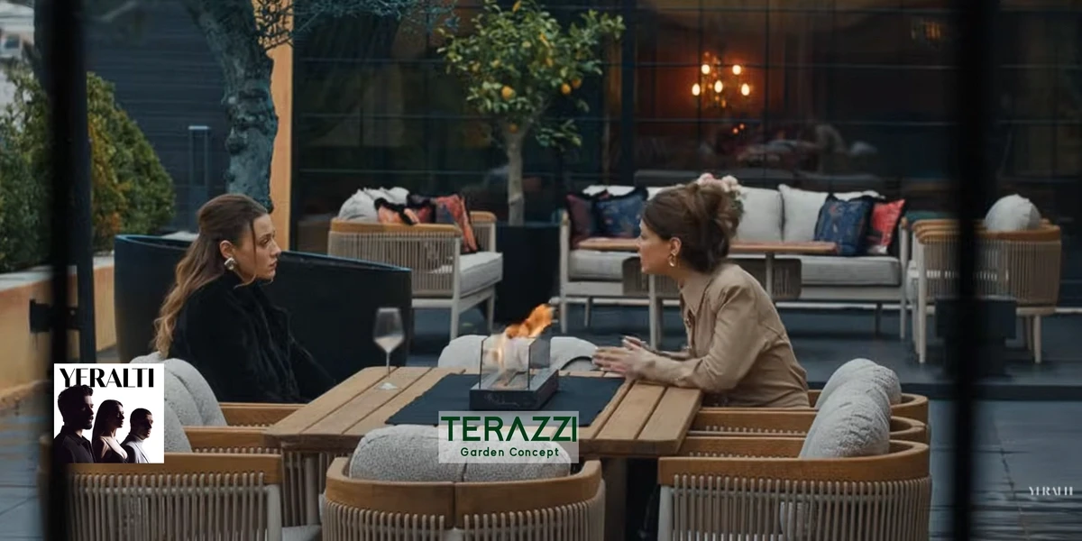 Terazzi Garden Concept olarak, bu dikkat çekici yapımın bahçe mobilyaları sponsoru olmaktan büyük gurur duyuyoruz. Dizide tercih edilen Minerva Koleksiyonu, dış mekan yaşam alanlarına karakter kazandırıyor. Ahşap detayları, dayanıklı alüminyum profil yapısı ve özgün Luxio-Cord ip örgü detayları ile Minerva koleksiyonu, güçlü bir tasarım dili sunarken aynı zamanda uzun ömürlü kullanım avantajı sağlar.