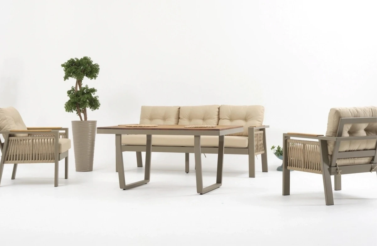 Terazzi Larissa Plus bahçe mobilyası koleksiyonu, dış mekanlarda estetik ve konfor sunar. Modern oturma grubu varyasyonları ile bahçenizi yenileyin.