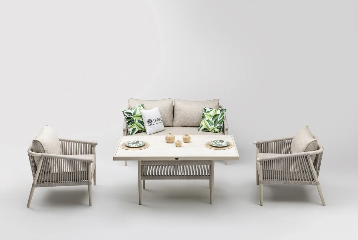 Minimal ölçü, maksimum konfor… Calisto Mini Bahçe Oturma Grubu, bahçe ve teraslarda alan tasarrufu sağlarken estetikten ödün vermiyor. Güçlü gövde yapısı ve rahat minderleri sayesinde maksimum konfor sağlar.