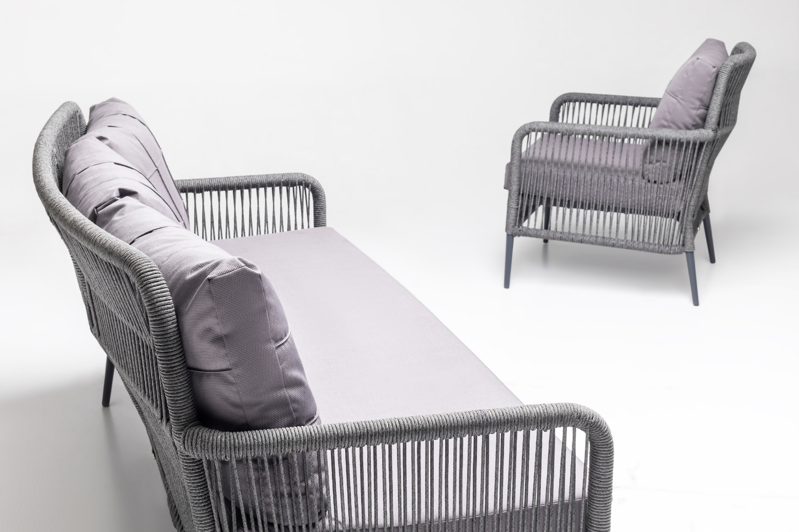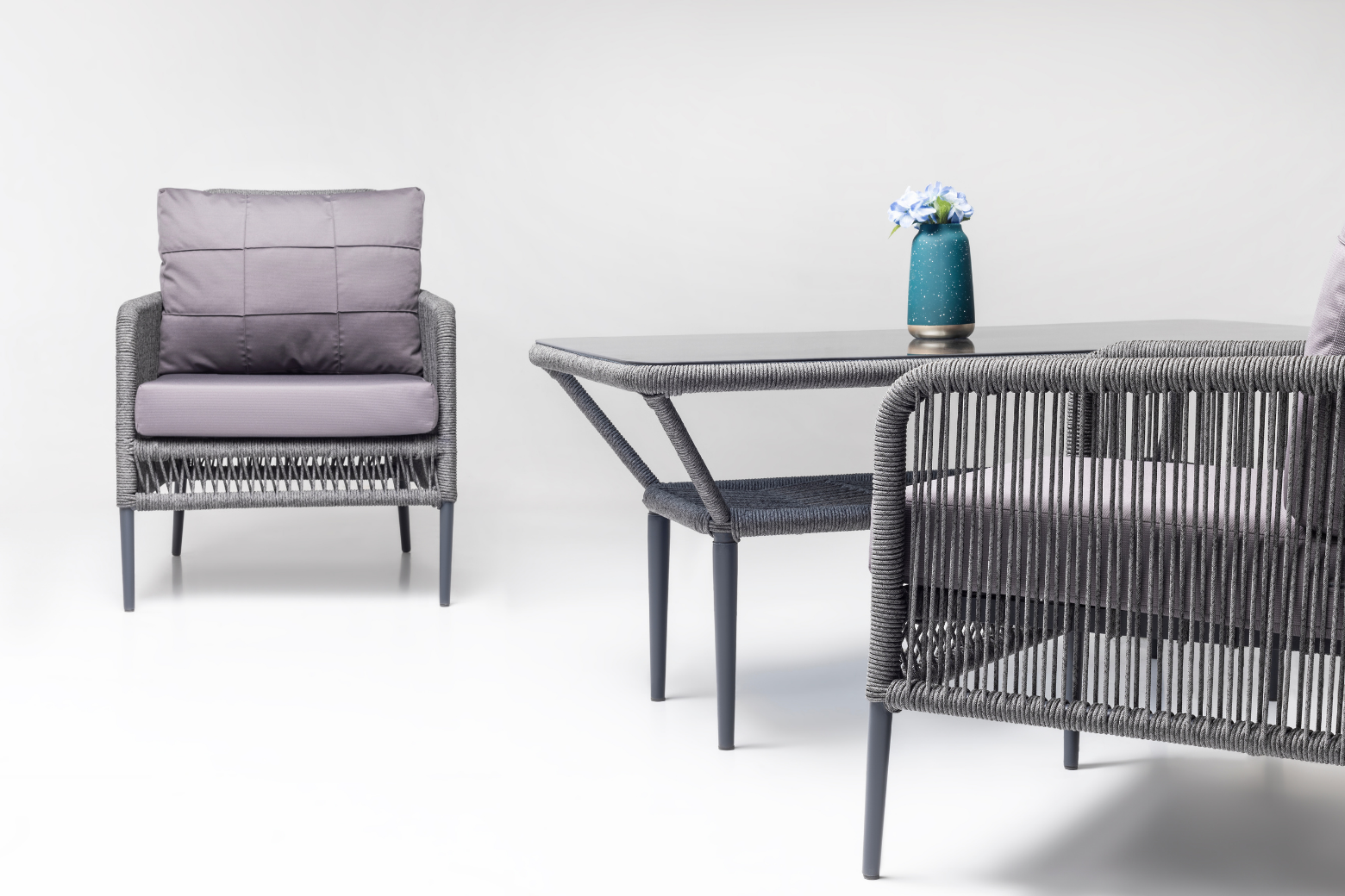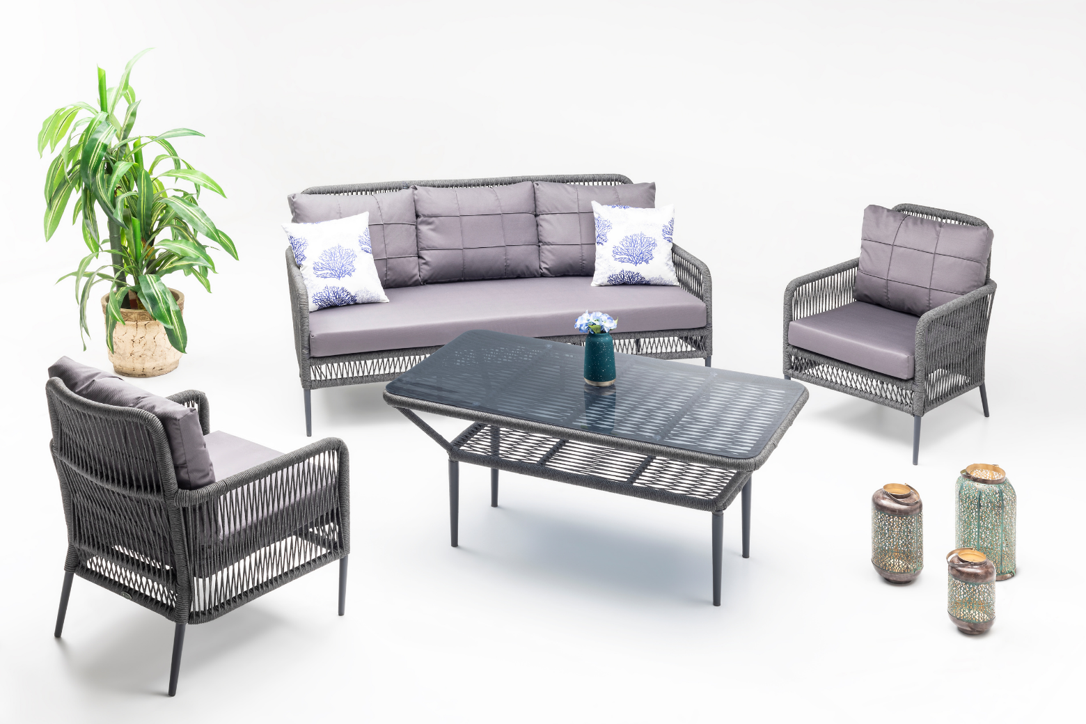 With its aesthetic structure, quality of Luxio Cord Outdoor rope and long-lasting use of aluminum, this set is just for you. It is a set suitable for all weather conditions, with the water repellent properties of its cushions and their resistance to UV rays.