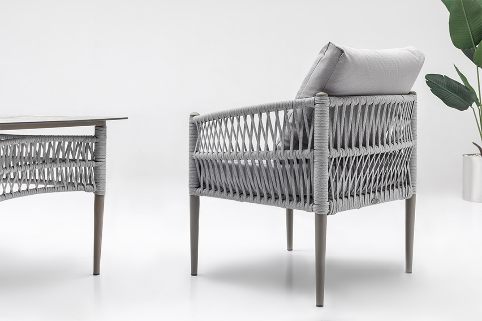 The water-repellent fabric of the Panama 3-seat seating group cushions, which will provide seating comfort in your home with its comfortable and wide seating, is with you with the durability of the fireproof and waterproof Luxio Cord Outdoor rope and the rust resistance of its aluminum frame.
