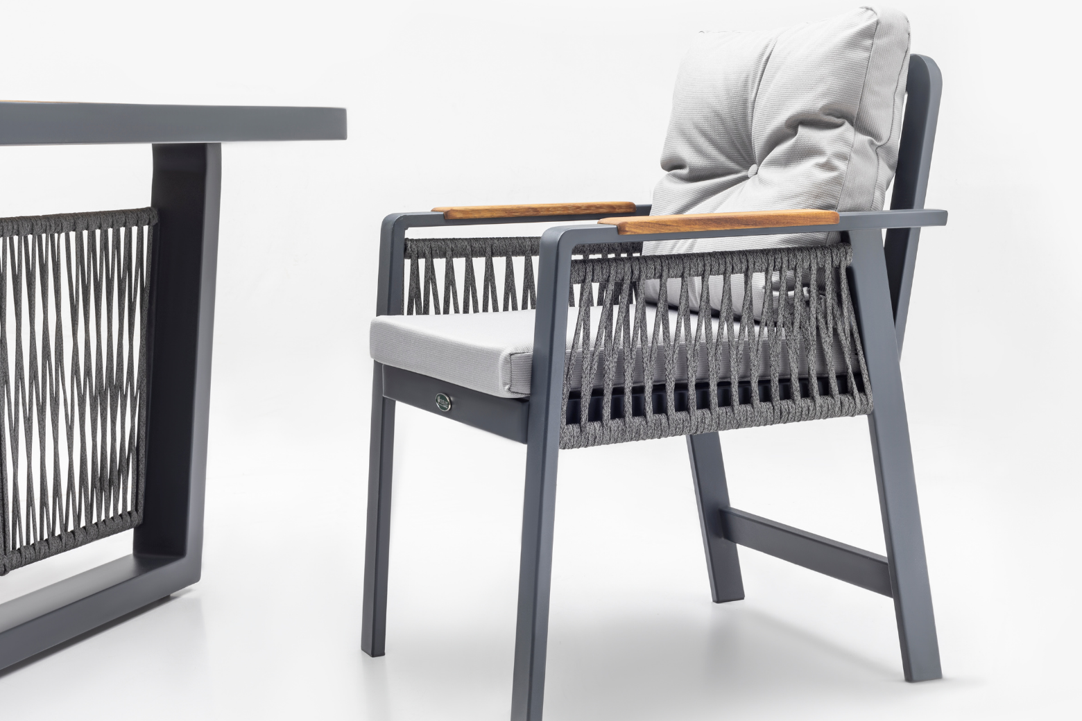 The strong structure of aluminum and the elegance of Luxio-Cord Outdoor rope combine with the warmth of ireko wood. Artemis Plus table set will allow you to enjoy your time in your garden.