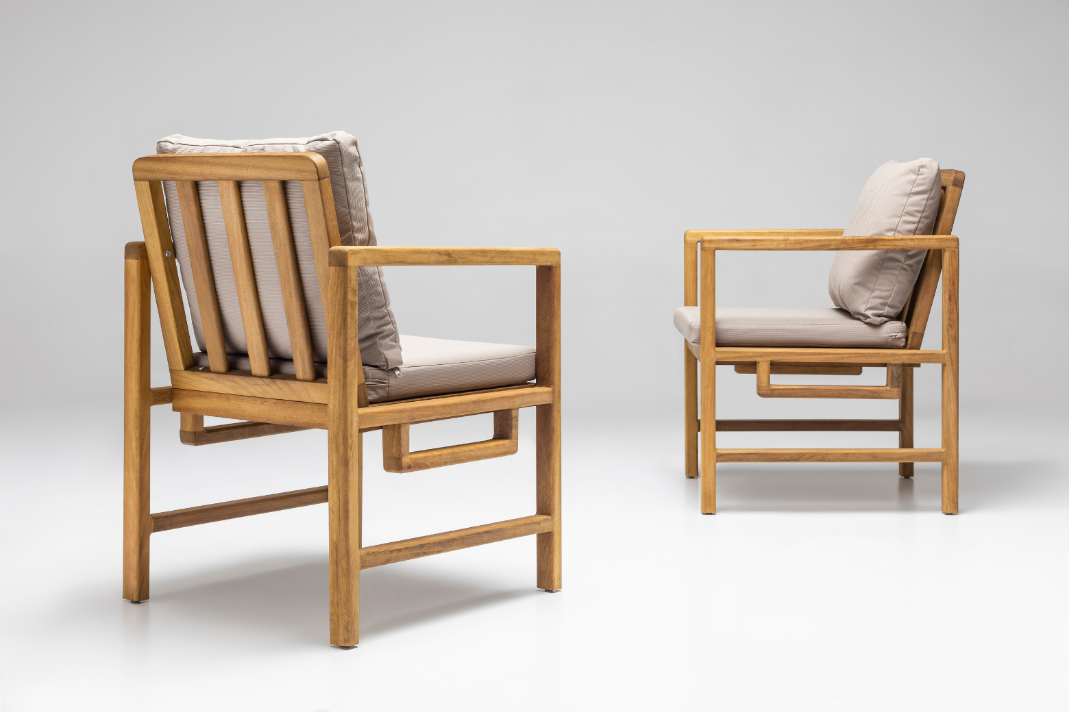The product is produced from iroko tree. The cushions used in the product have a density of 32 DNS, and the cushion fabrics are water repellent and stain resistant.