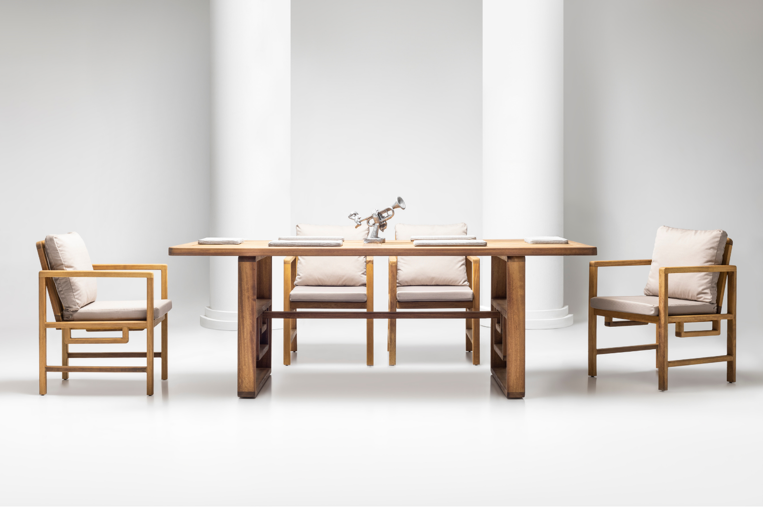 The Napoli wooden dining set will add elegance to your home with its environmental awareness and solid structure. We designed the Napoli dining set for you because the Iroko tree is resistant to sunlight and rain and the fabrics have water repellent properties.