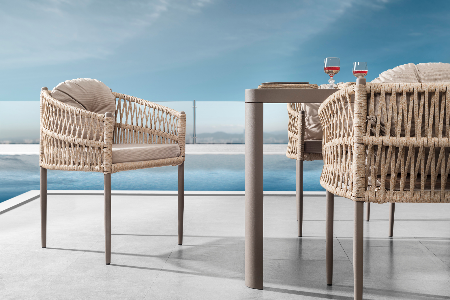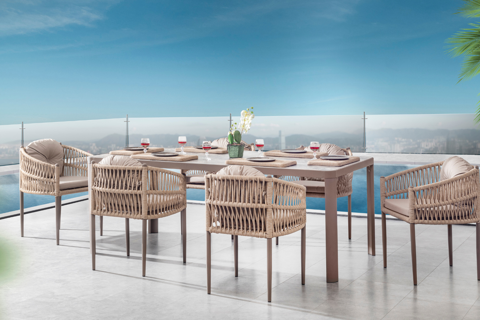 With the comfort of its chairs, the tasteful design and durability of the HPL compact table top, the Panama table set consists of a 100x200 table and 6 chairs. Luxio Cord Outdoor rope offers long-lasting use with its fireproof and waterproof feature.